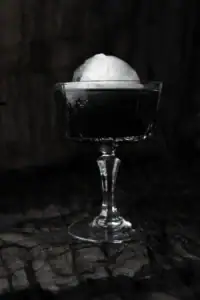This Halloween cocktail is pitch black, citrusy and just a little spooky. The color comes from black-dyed vodka while cranberry and lime add a tart twist. Serve with an ice ball for eerie elegance.Spirit: Black Vodka & Triple Sec