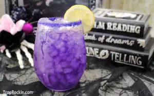 An easy, 4 ingredient purple cocktail, this Wicked Witches Brew cocktail is perfect for Halloween and beyond. Make it for your next Halloween party or leave off the garnishes and enjoy a delicious lavender-colored drink any time of year (not just Spooky Season). Spirit: Gin