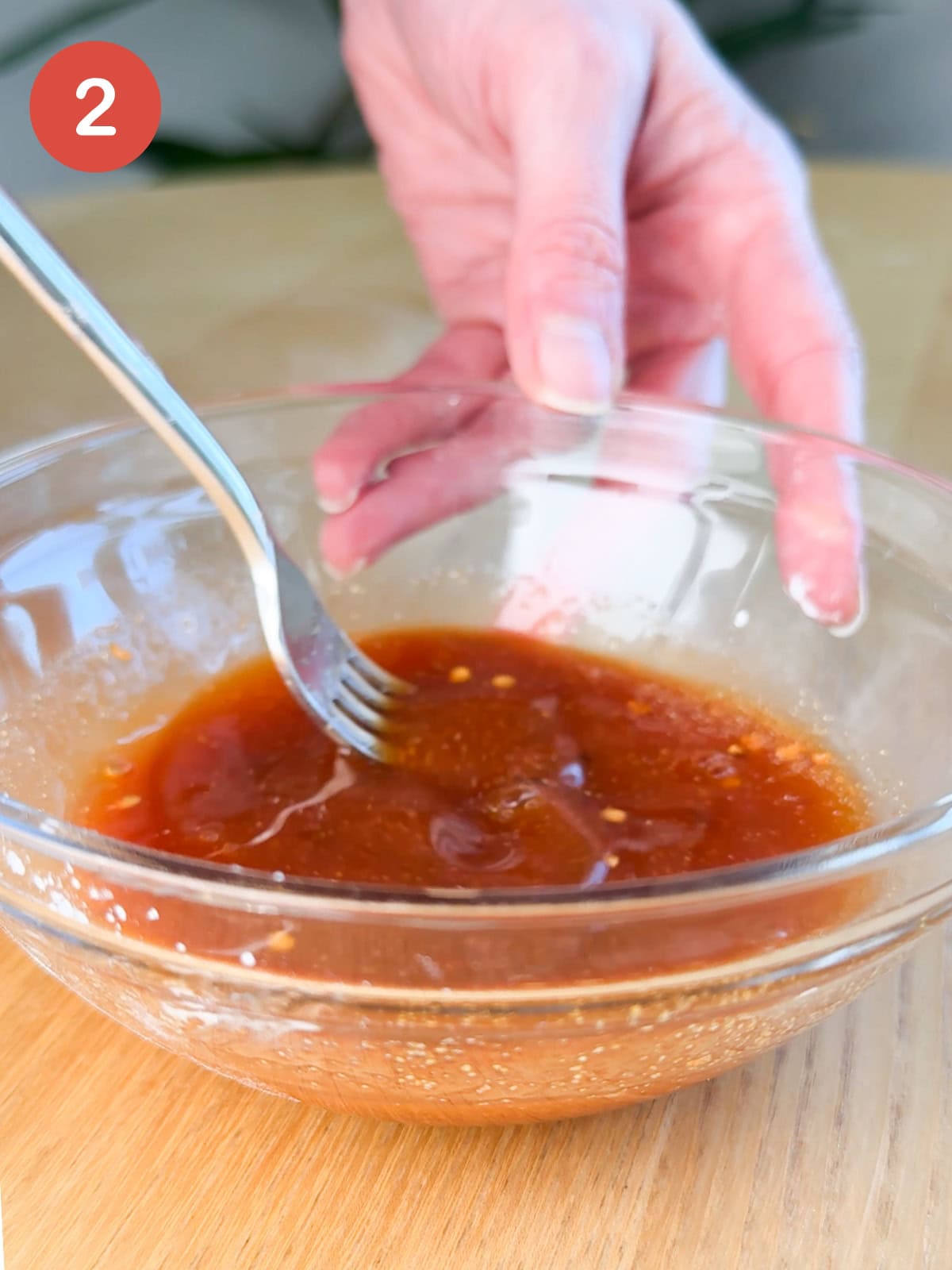 While your tofu is cooking, whisk together your hot honey sauce by combining all the sauce ingredients in a small bowl.