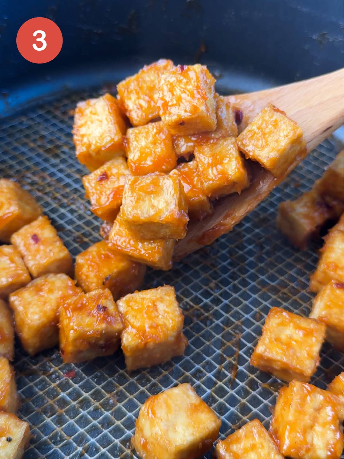 ❓No air fryer? No worries! You can bake tofu at 400° F for 20-25 minutes, flipping halfway, until golden.
