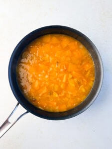 Step 2: Whisk in flour, cook 30 seconds. Whisk in broth, tomato paste, and salt. Whisk in pumpkin and apple. Bring to boil. Cover, reduce heat, and simmer for 25 minutes or until pumpkin and apple are tender, stirring occasionally.