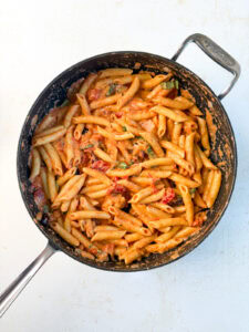 As a lifelong pasta enthusiast with nearly 50 pasta recipes under my belt, I still find myself returning to classic penne. This version has a Mediterranean twist that sets it apart from the rest—fresh basil, crushed tomatoes, and briny Kalamata olives give it a bright, flavorful kick. Best of all, it comes together in just 20 minutes, which is why my husband loves it as much as I do. Adding just a touch of cream cheese gives the sauce a velvety richness that practically melts in your mouth. This penne pasta has been on repeat at our house and likely will be at yours too!